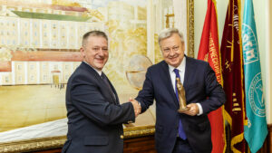 During the event days, Andrey Khlutkov had a warm meeting with Yury Romanovsky, rector of Euphrosyne Polotskaya State University, as a follow up of the both universities successful cooperation which has started in 2023.