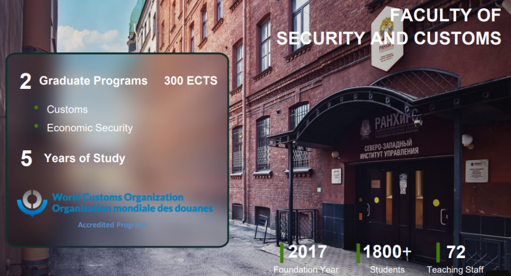 The Faculty consists of the Department of Customs Administration and the Department of Security.