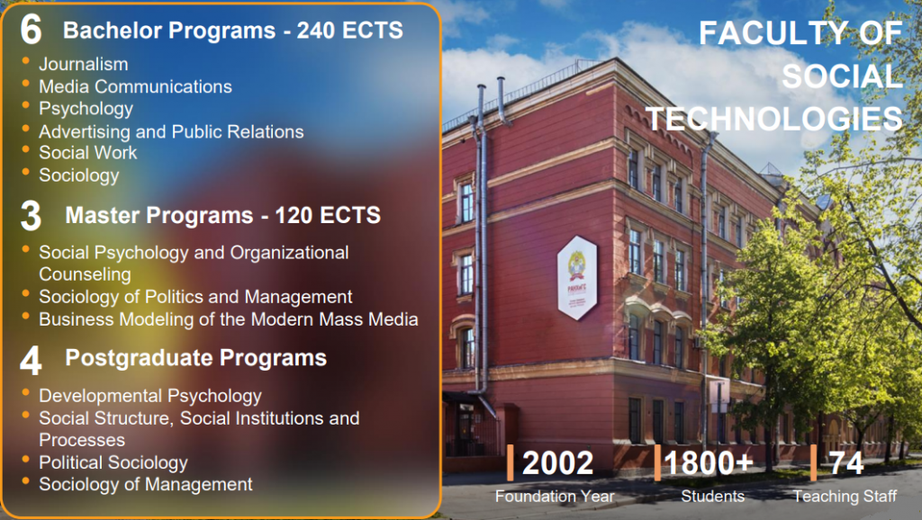 The Faculty consists of the Department of Journalism and Media Communications and the Department of Social Technologies.